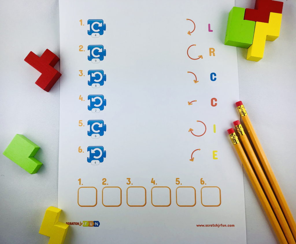 On the worksheet, there are six different turn blocks. I’ve prepared it in several different versions.